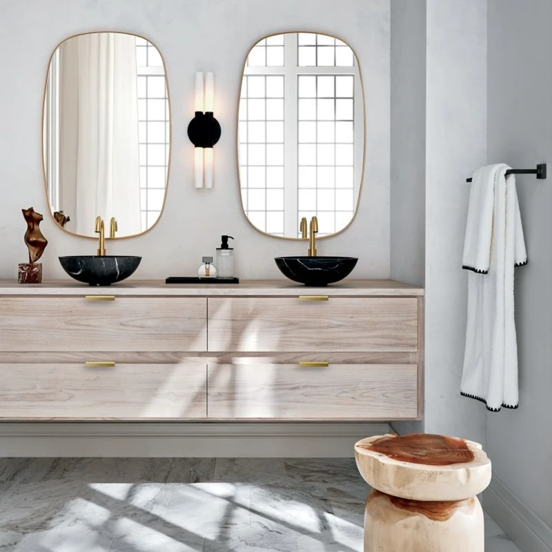 Drawer edge pull by Barcelona-based Mermelada Estudio sports sleek lines and subtle curved design details, crafted of solid brass that elevates any space. Learn about Mermelada Estudio on our blog. CB2 exclusive.