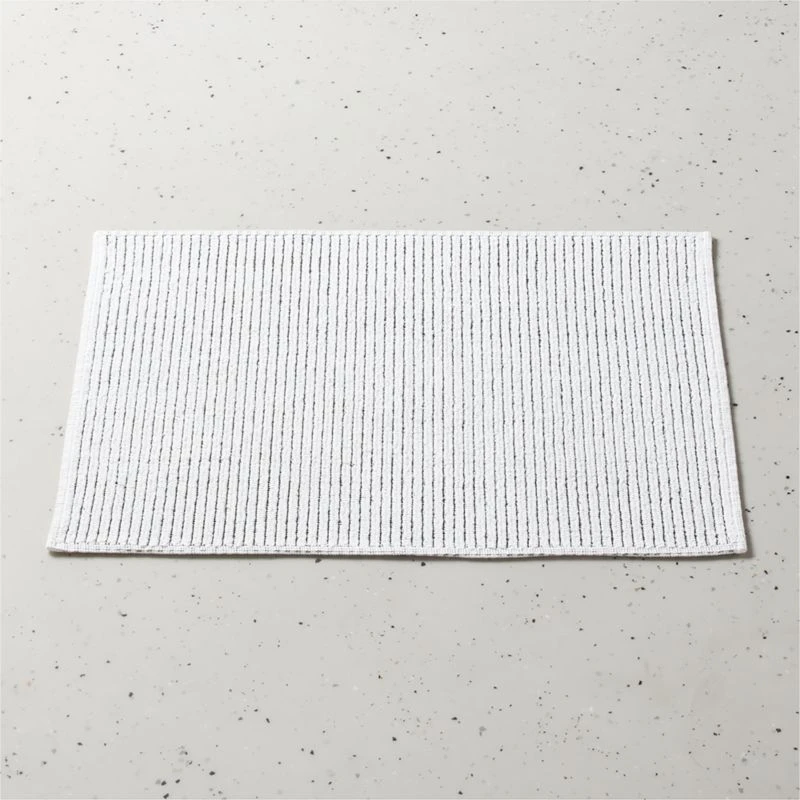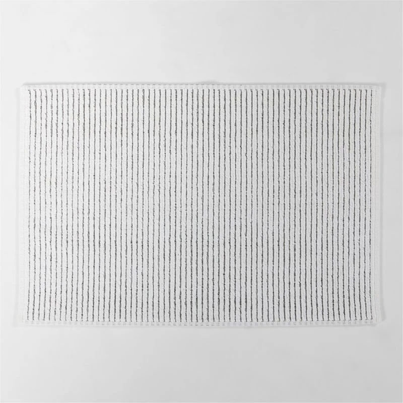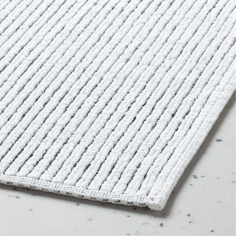Soft and absorbent underfoot, thin black stripes create a channeled look on bright white cotton. CB2 exclusive.