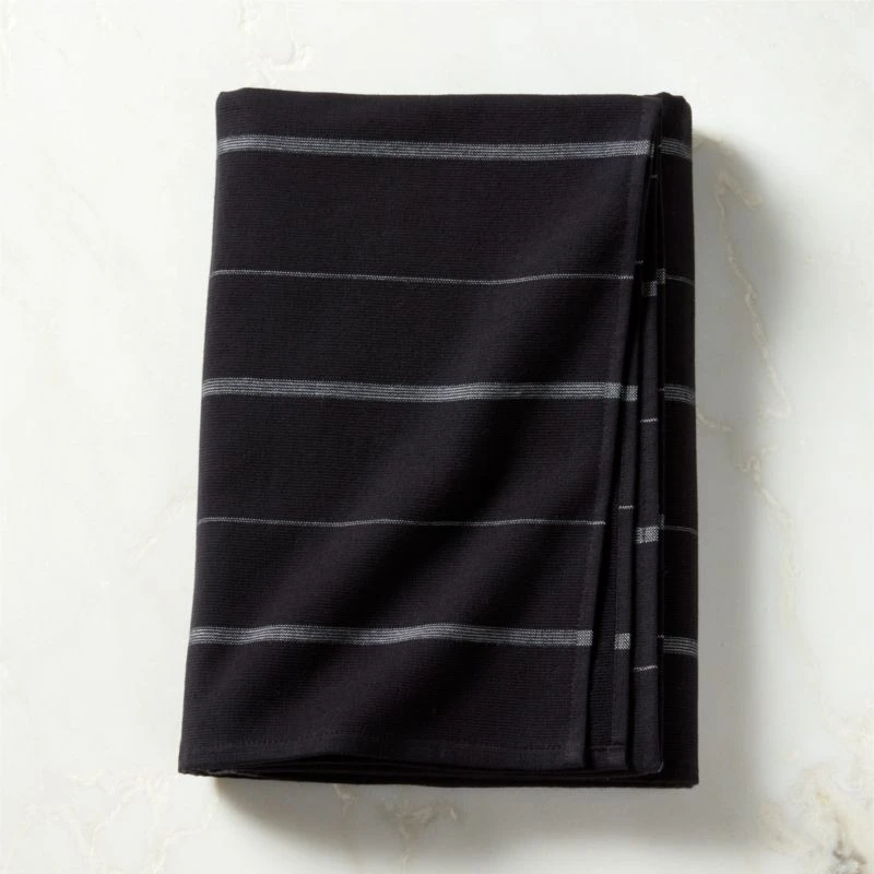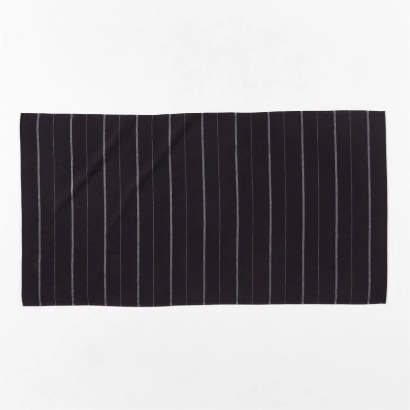 Woven in Turkey, minimalist white stripes front this black bath towel. Backed in cotton terry for extra absorbency. Cotton is certified organic by the Global Organic Textile Standard (GOTS). CB2 exclusive.