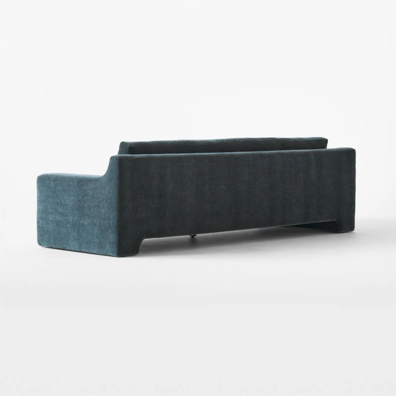 Sofa by VUUE makes a bold statement. Simple, structured frame contrasts with loose cushions, all fully upholstered in midnight blue performance velvet, —making this a striking design moment that’s well-equipped for everyday living. CB2 exclusive.