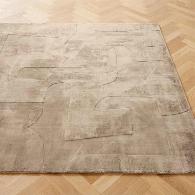 Handloomed in 100% TENCEL™ Lyocell, lush area rug is embossed with a subtle abstract design inspired by Brazilian modernism. Known for its natural comfort, sustainable TENCEL™ Lyocell offers softness with a subtle sheen, creating tonal highs and lows as it catches the light. CB2 exclusive.