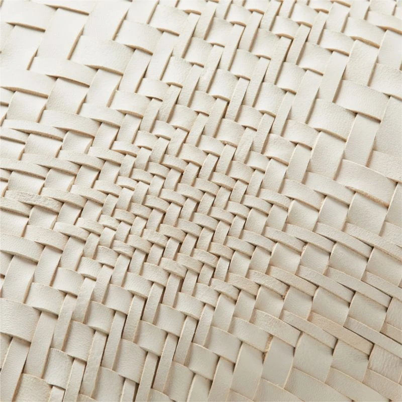 Strips of genuine oat leather are woven together for a unique, optical design on this throw pillow. Oat pillow flips to a solid neutral cotton back. CB2 pillows include a pillow insert in your choice of feather down or down alternative. CB2 exclusive.