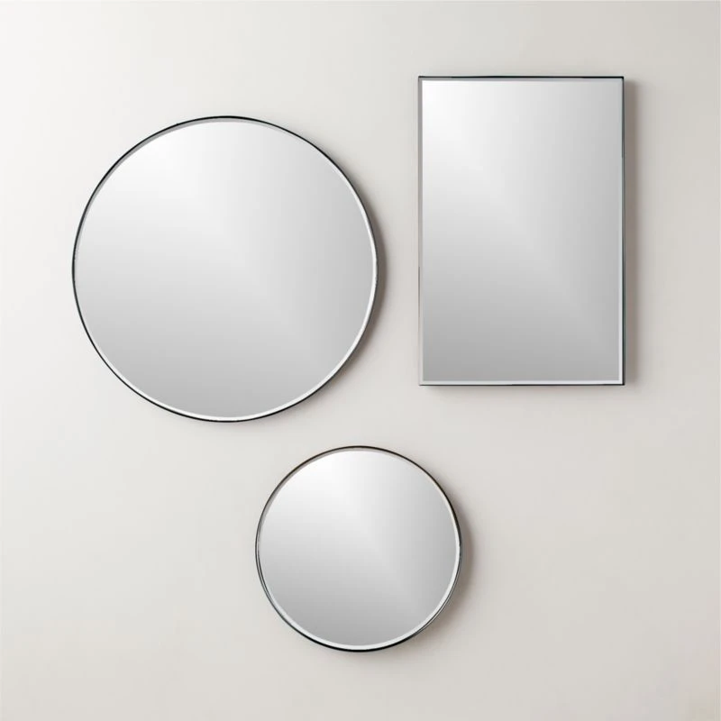 Beveled edges and brass line up in a handcrafted rectangular mirror that boasts both simplicity and depth. Solid brass is finished in matte black for an elevated look that hangs stunning above a vanity or as a goes-anywhere decor piece. Part of the Graduate mirror collection. CB2 exclusive.