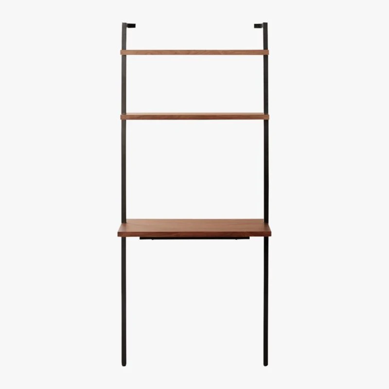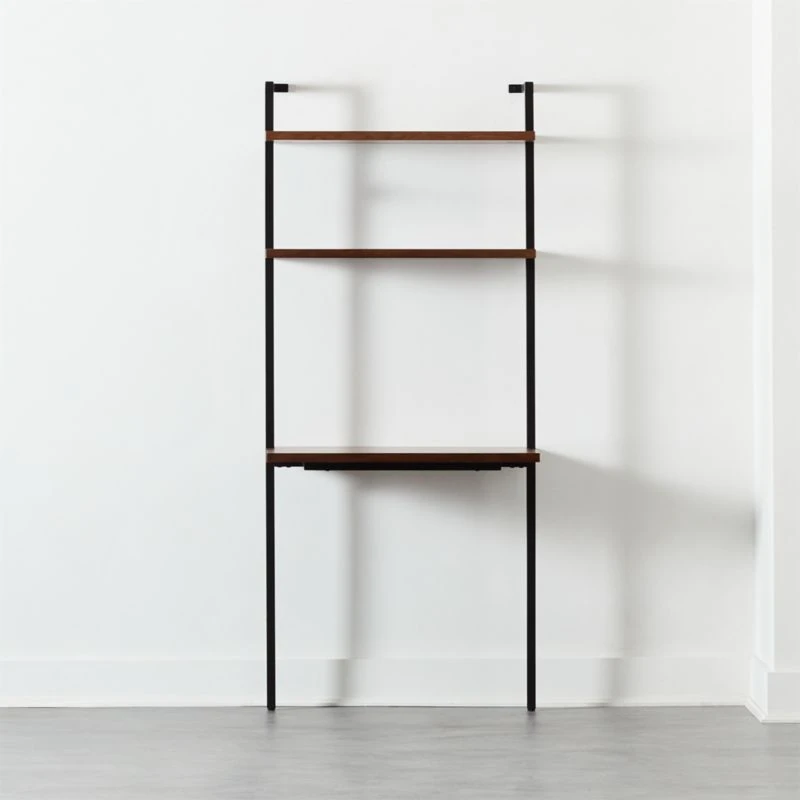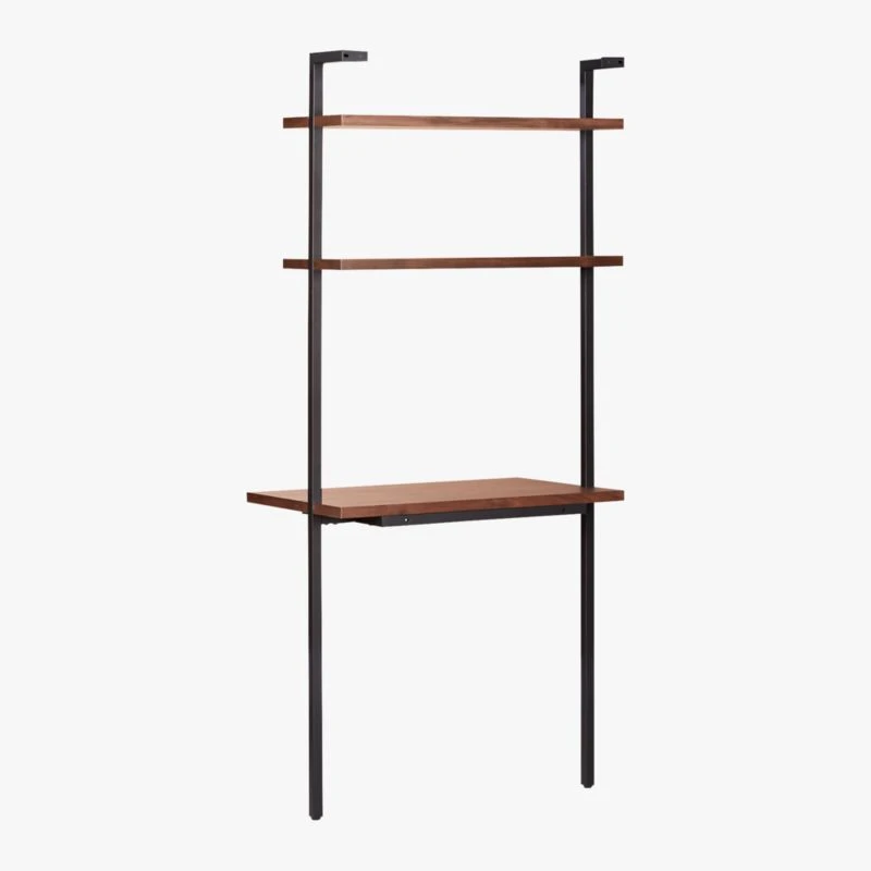 Helix Walnut Wood Wall Mount Desk With Shelves 70”