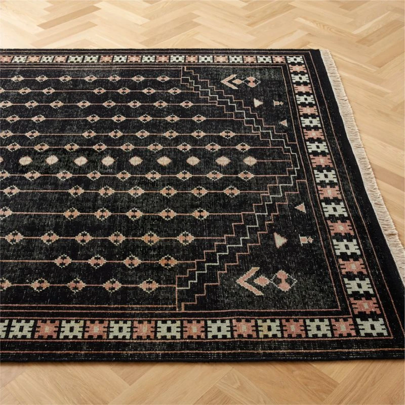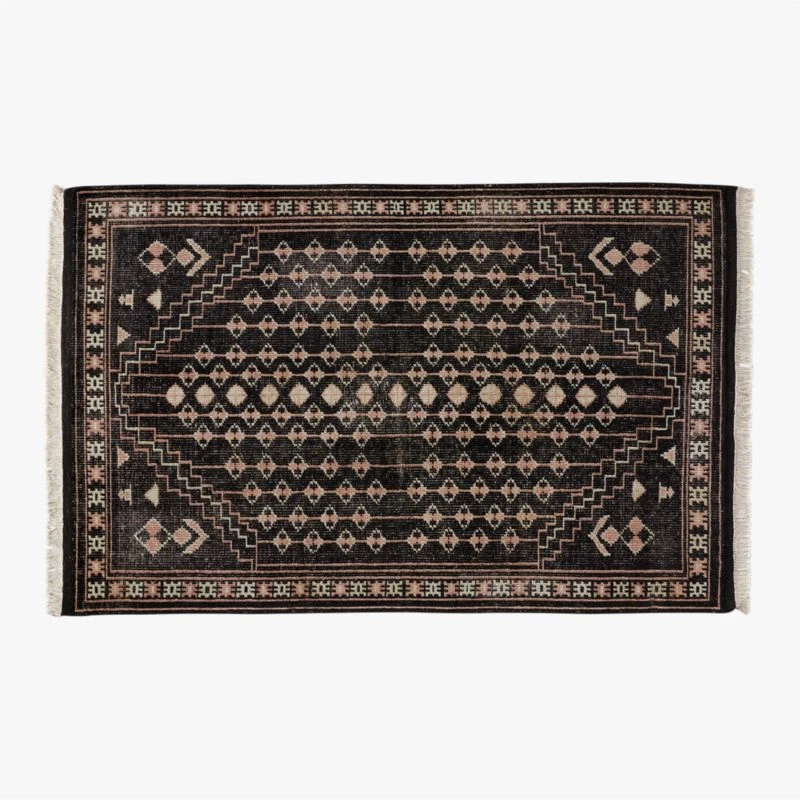 Inaz Hand-Knotted Black Wool Area Rug 5’x8′ 5’x8′