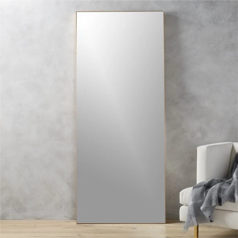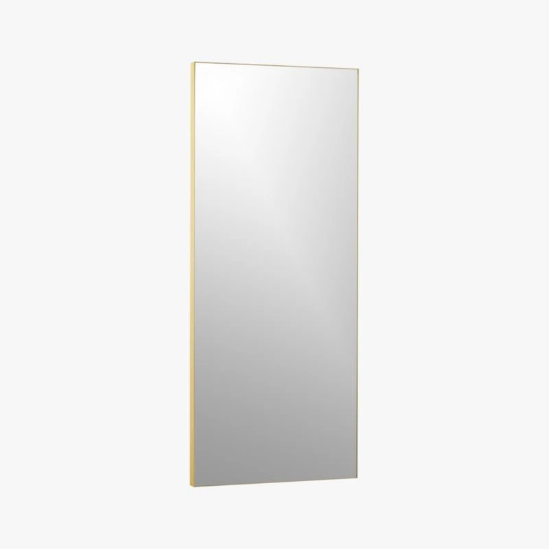 Mirror image without bounds framed thin, trim and exact in pure extruded aluminum with a brass finish. Resists corrosion to work bath or kitchen, too. Anti tip hardware is included.