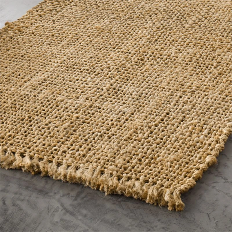 A vintage-inspired twist on the classic jute rug. Natural jute yarn both warps and wefts for a looser, less structured weave. We also gave the rug a slight distressing for more of a found/collected vibe. Each rug will be unique. CB2 exclusive.