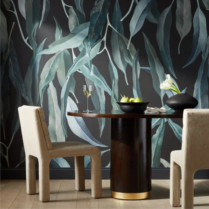 Dramatic in scale, botanically inspired wallpaper makes a statement. Large, mural-scale pattern in rich jewel tones adds just the right amount of dimension. CB2 exclusive.