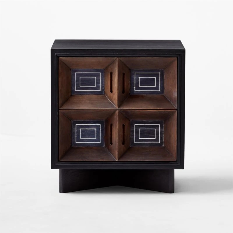 Paseo 2-Drawer Carved Black Oak Wood Nightstand