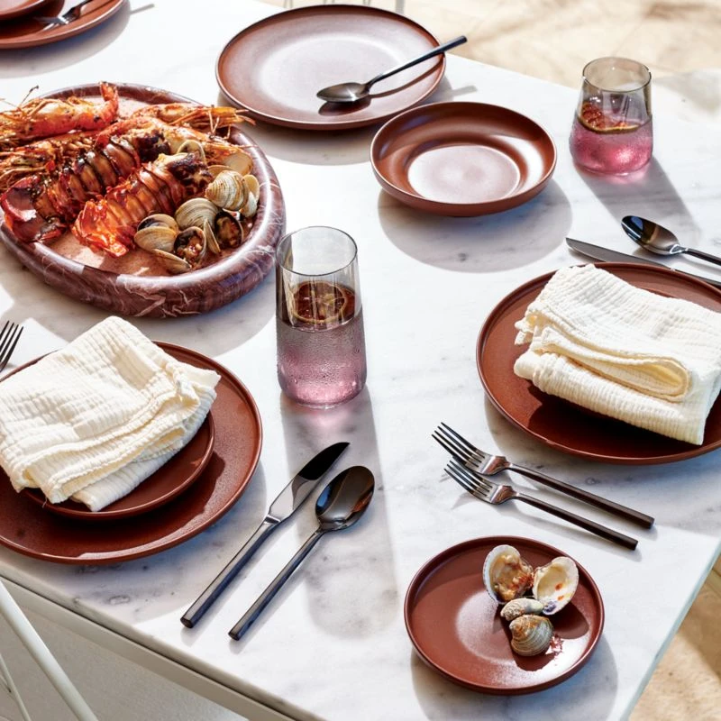 Cut into a sleek oval with an asymmetrical rim, deep red marble server brings a touch of luxury to the table. Each server will be unique, as the marble will vary slightly in color and activity. Perfect for entertaining, especially as a cheese board. CB2 exclusive.
