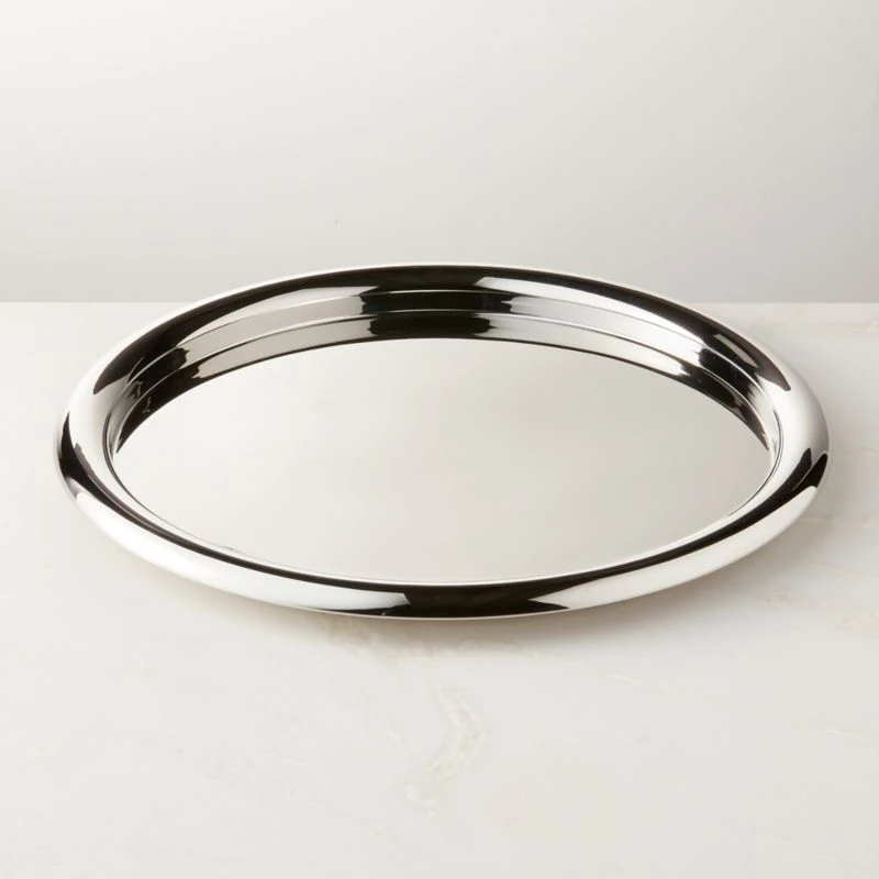 Piero Round Polished Stainless Steel Serving Tray 15.75″ dia. x 1″H