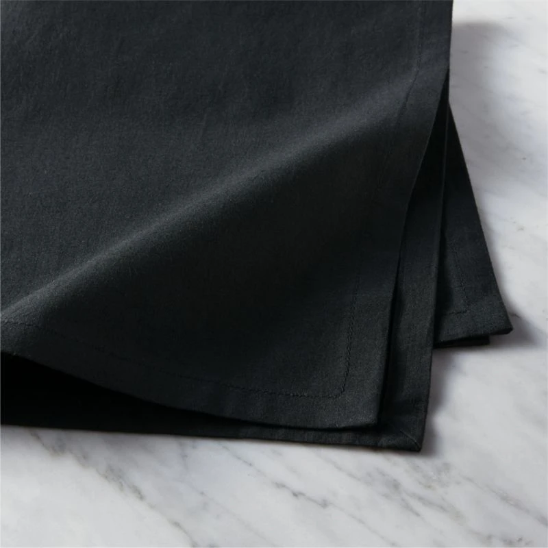 100% lightweight cotton napkin politely polishes your modern table in chic black with a finely finished stitched edge.