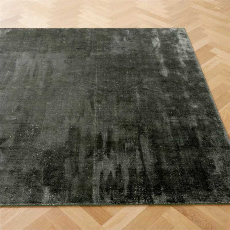 Muted dark teal viscose rug echoes the soft hand and luster of a silky velvet with visible ivory warp yarns underneath. Composed of a combination of looped and cut viscose, the handloomed pile takes on tonal highs and lows as the light changes throughout the day. CB2 exclusive.