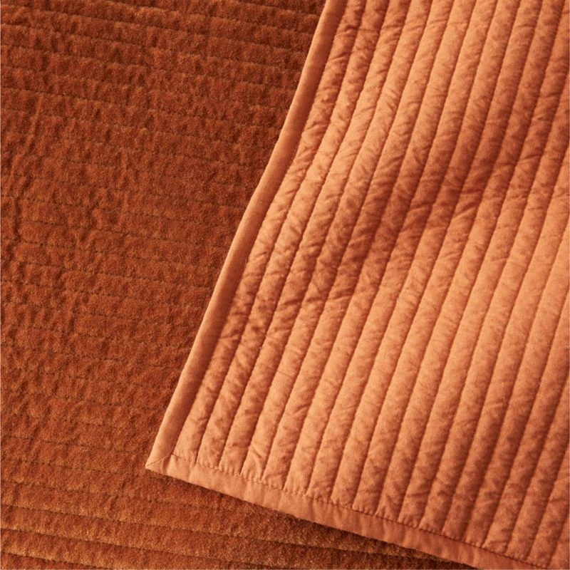 Warm copper cotton velvet elevates the bedroom with effortless glam. Detailed stitching adds soft, channeled texture while cotton velvet creates warmth and coziness. CB2 exclusive.