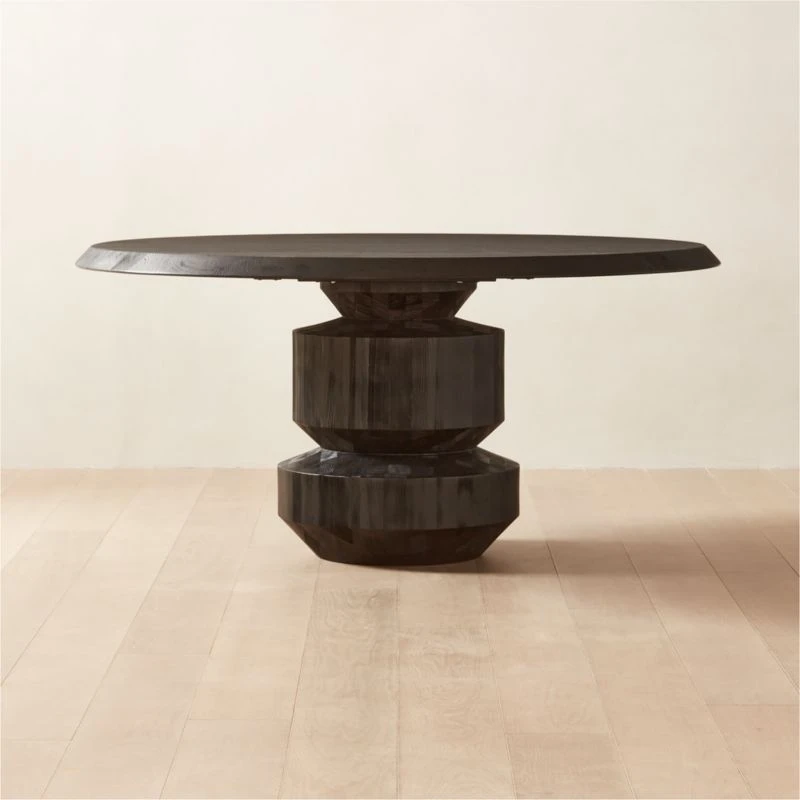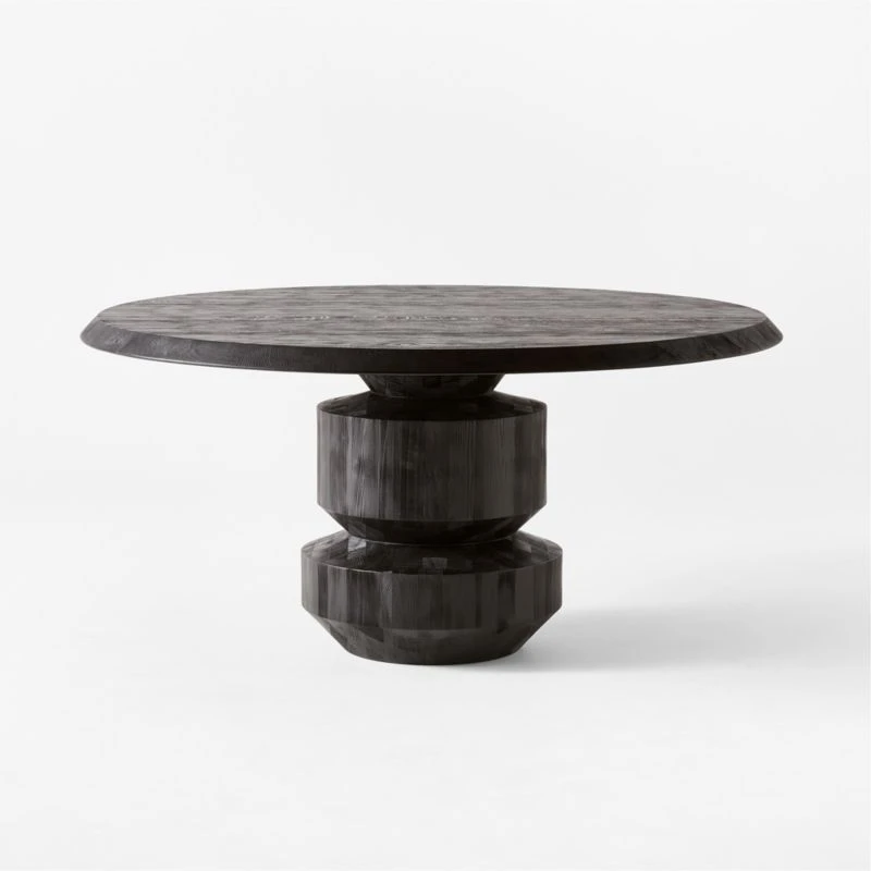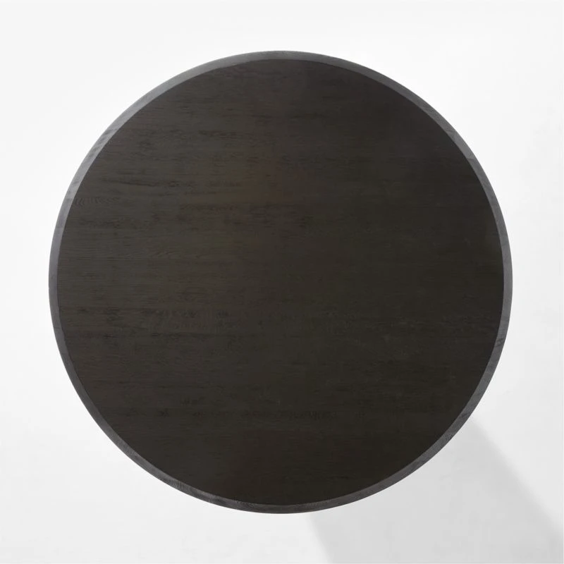 Brett Beldock modernizes the traditional round dining table with stunning finishes and unexpected texture. The natural texture of solid oak is highlighted throughout, accentuated by the wirebrushed finish. Ebonized hemlock wood supports from below in all black. CB2 exclusive.