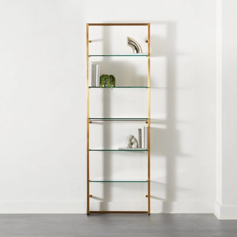 Tesso Brushed Brass 84″ Bookcase. 28″Wx10″Dx84″H