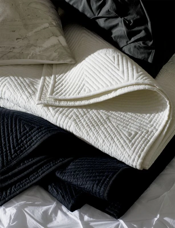 Concentric triangles quilt a fresh texture on soft cotton. Triangle Black Bed Linens is a CB2 exclusive.
