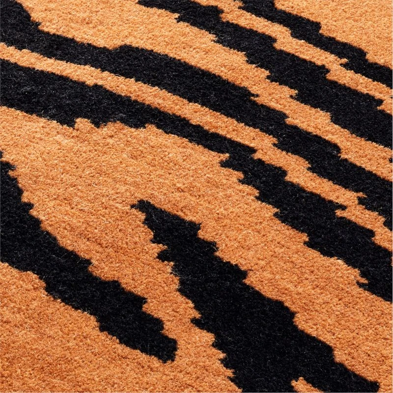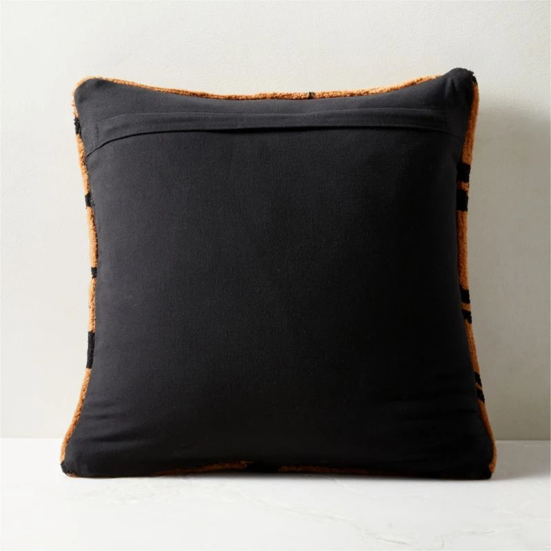 Tonal brown throw pillow elevates animal print in modern style. Knotted by hand, wool yarn lays a soft, textural base for the animal-inspired design featured on the front. Pillow flips to a solid black cotton back. CB2 pillows include a pillow insert in your choice of feather down or down alternative. CB2 exclusive.