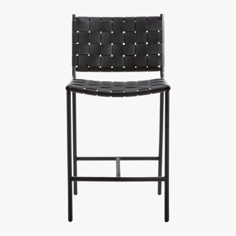 Laid-back design recalls classic midcentury style. Designed by Mermelada Estudio, the silhouette was fine-tuned and rich black leather was woven for the seat and back. Due to differences in all-natural leather, each stool will be unique. Learn about Mermelada Estudio on our blog. CB2 exclusive.