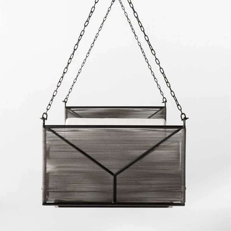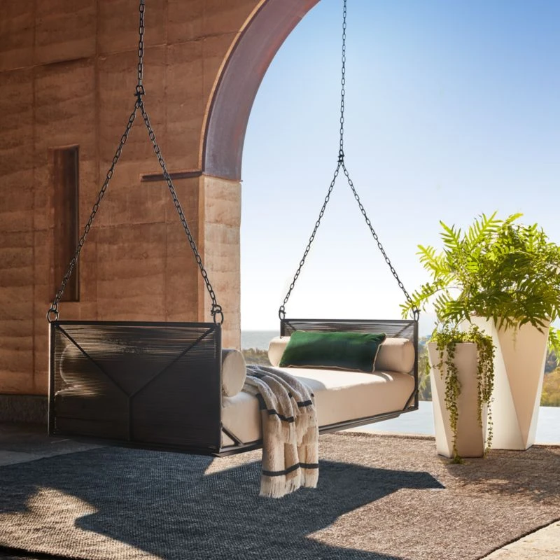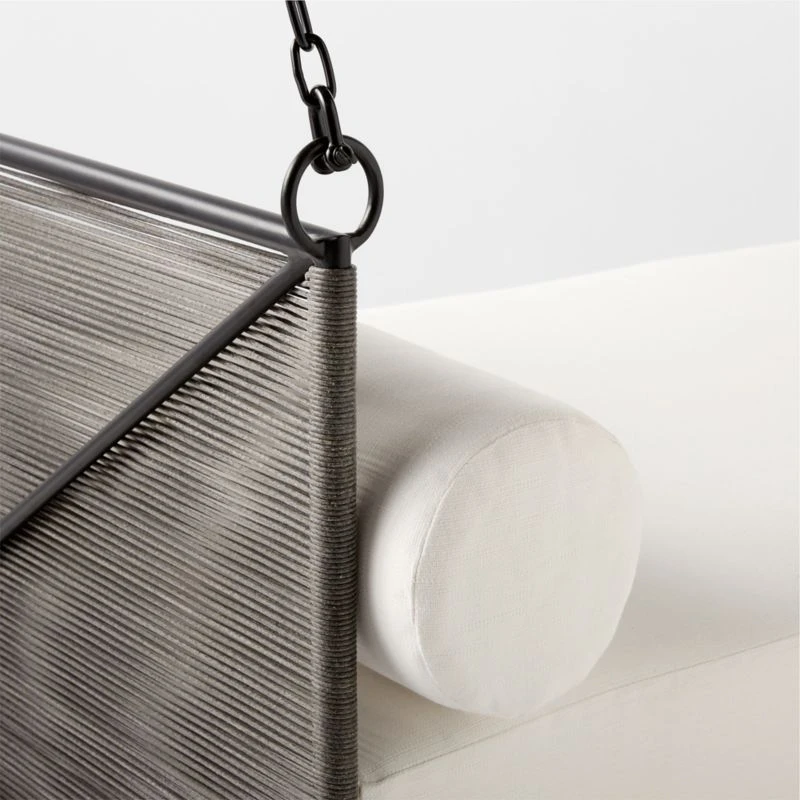 Zora Black Rattan Outdoor Hanging Daybed With White Sunbrella® Cushions